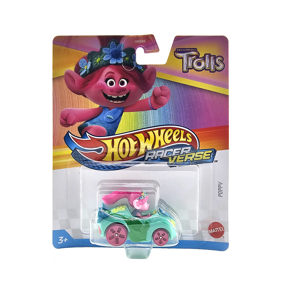 Apresentamos a Hot Wheels Racer Verse Poppy, a adorável personagem do filme Trolls agora pronta para dominar as pistas em grande estilo! Este carrinho em escala 1:64 captura a essência vibrante e alegre de Poppy, combinando elementos icônicos do filme com a velocidade e a emoção de uma corrida Hot Wheels.