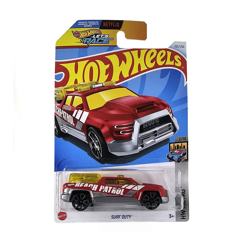 Hot Wheels é uma marca da Mattel que produz carrinhos de brinquedo em Die-cast, fabricação de modelos com metal injetado. Esse é o modelo Surf Duty que aparece na série animanda da Netflix Hot Wheels Let's Race . Faz parte da coleção Hot Wheels Metro.
