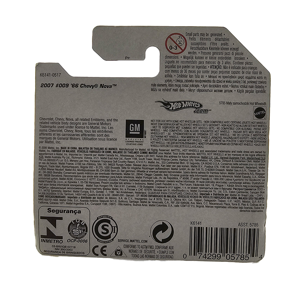 Hot Wheels é uma marca da Mattel que produz carrinhos de brinquedo em Die-cast, fabricação de modelos com metal injetado. Esse é o modelo '66 Chevy Nova que faz parte da coleção 2007 First Editions.