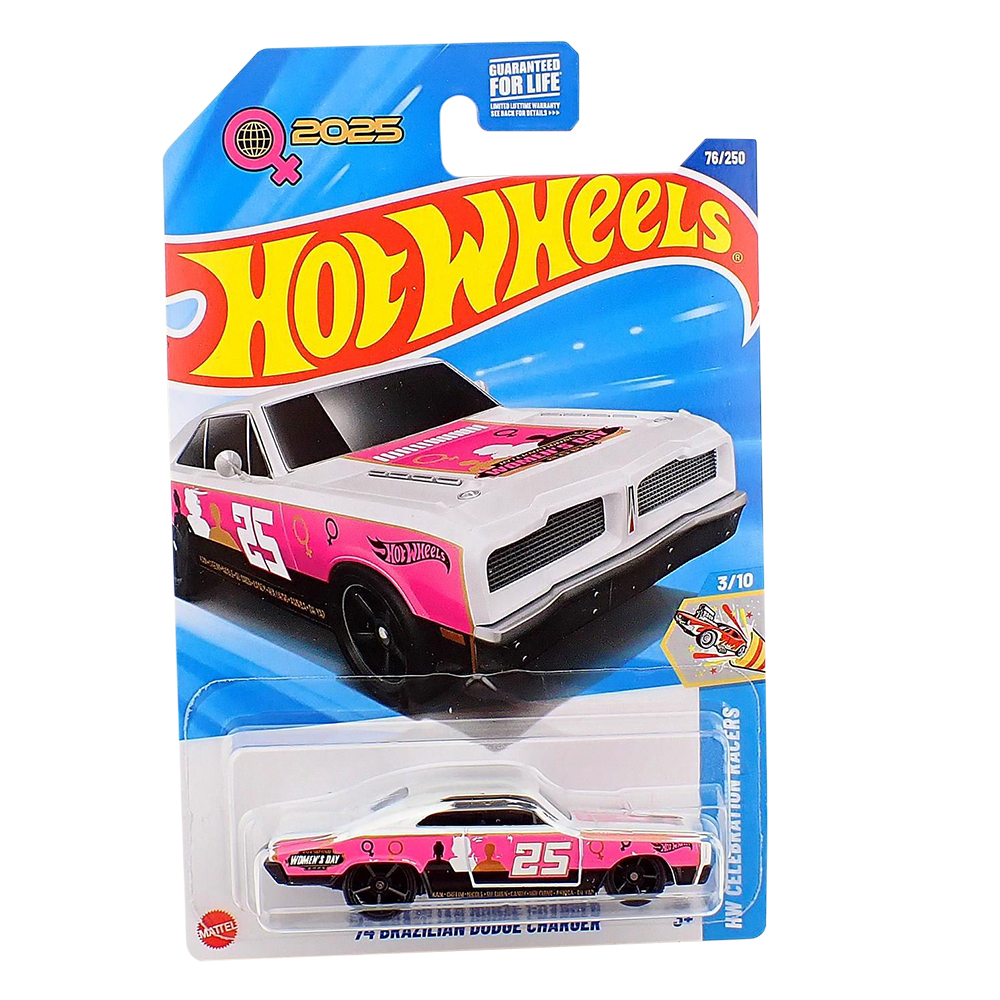 Celebre a velocidade e a história automotiva com o icônico Hot Wheels '74 Brazilian Dodge Charger, parte da coleção Celebration Racers! Este clássico brasileiro chega com uma pintura especial e detalhes autênticos que homenageiam um dos muscle cars mais amados do país.