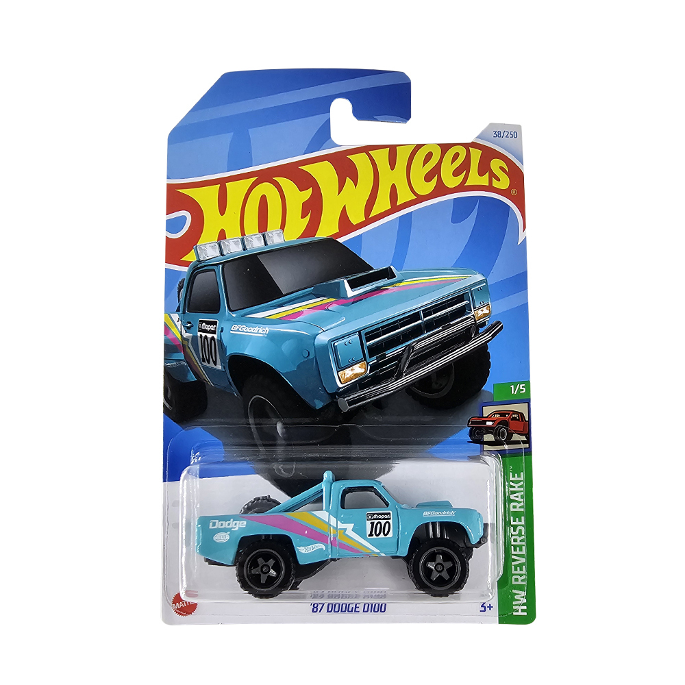 Hot Wheels é uma marca da Mattel que produz carrinhos de brinquedo em Die-cast, fabricação de modelos com metal injetado. Esse é o modelo '87 Dodge D100 que faz parte da coleção Hw Reverse Rake.
