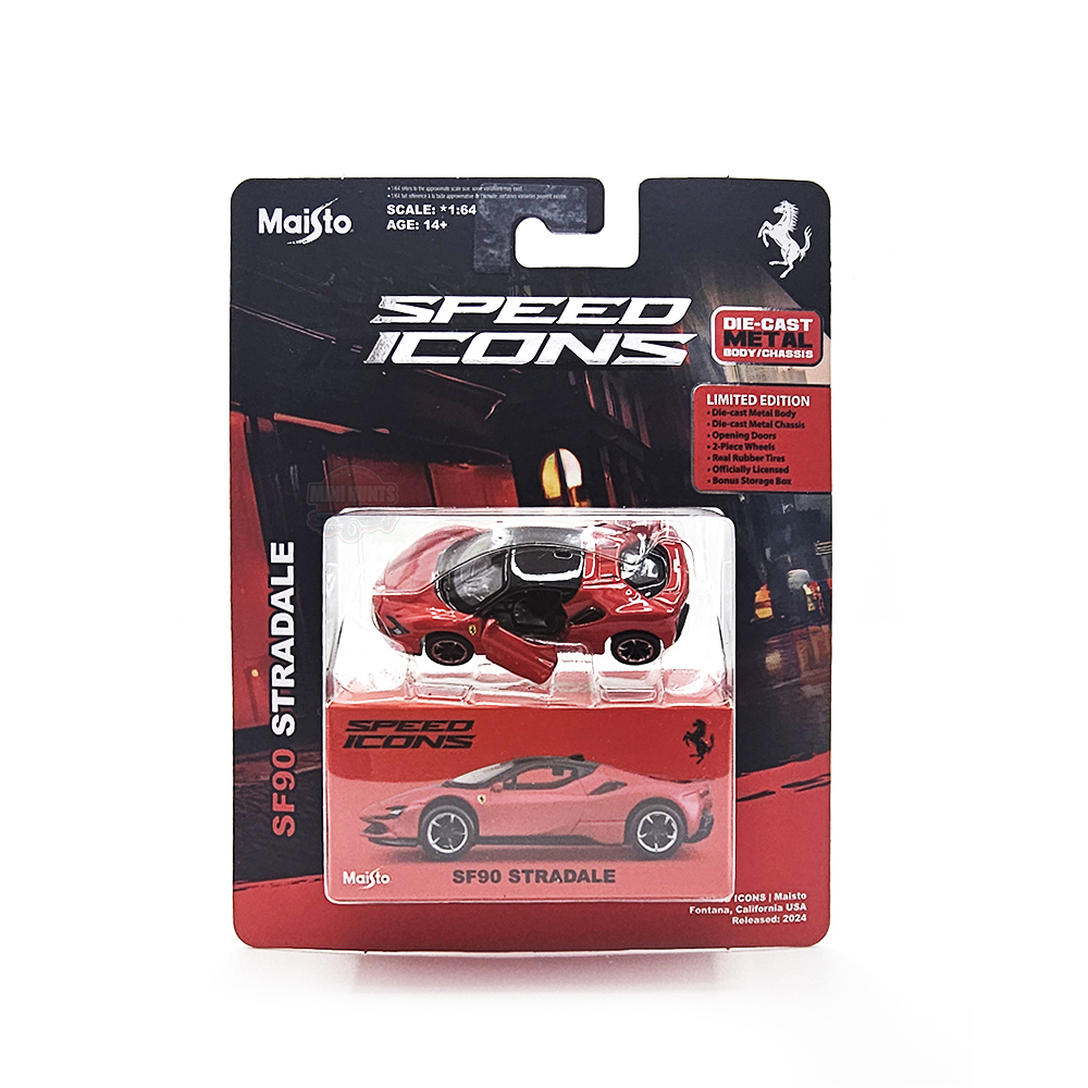 Apresentamos a você a miniatura da Ferrari SF90 Stradale, na icônica cor Rosso Monza, da série Speed Icons da Maisto. Esta não é apenas uma miniatura, mas sim uma representação em escala perfeita de um dos carros mais emblemáticos da Ferrari.