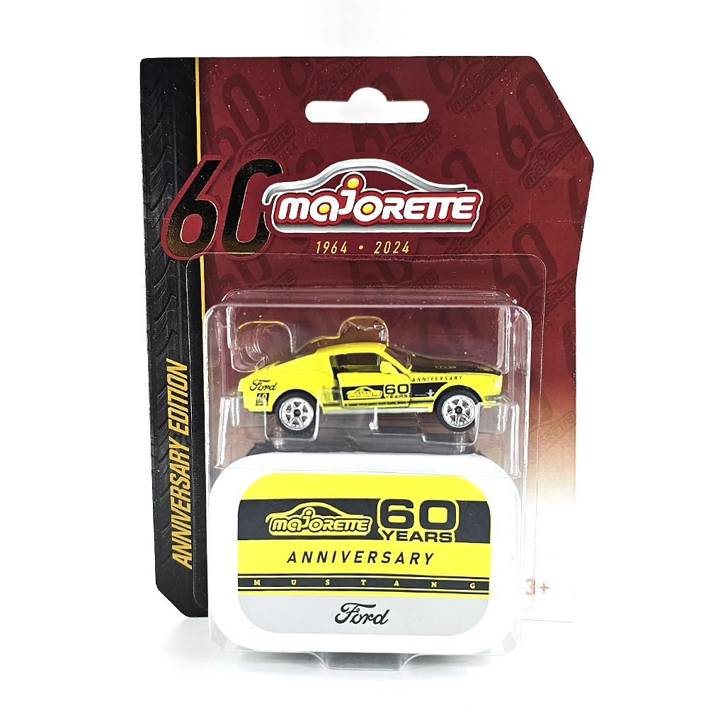 A Majorette é parceira da indústria automotiva há 60 anos, permitindo desenvolver modelos de veículos muito realistas e escalas menores. Essa é uma série é uma Edição de Aniversário Deluxe de 60 anos da Majorette, acompanha uma lata personalizada para guarda a miniatura. Esse é o modelo Mustang Fastback.