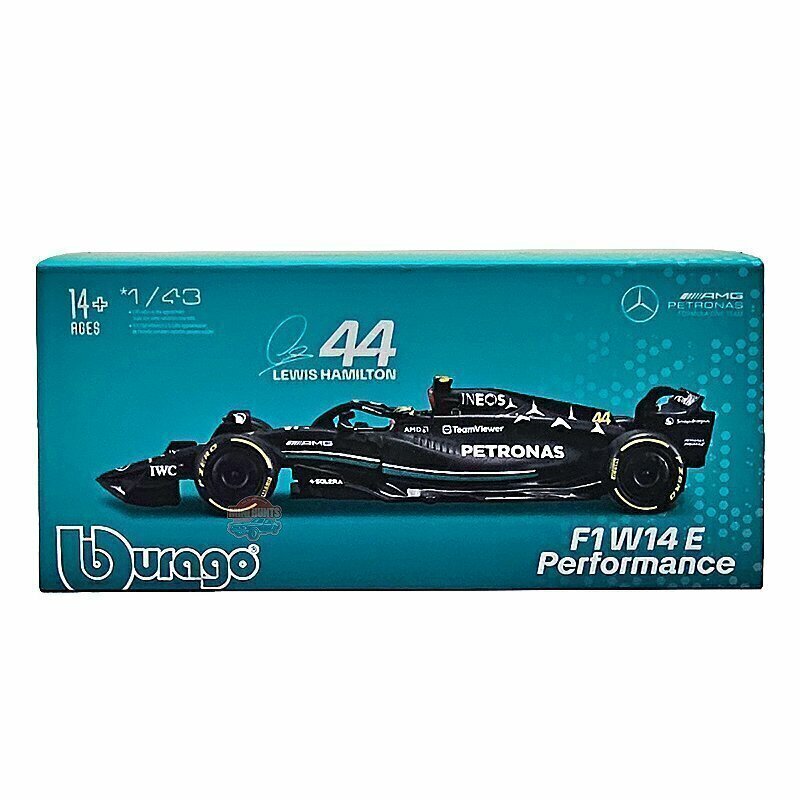 A Mercedes-AMG Petronas W14E Performance da Bburago chega com visual icônico e acabamento robusto. Produzida em metal (diecast), é uma peça oficial licenciada que combina qualidade e fidelidade para fãs da equipe alemã e do universo da Fórmula 1.